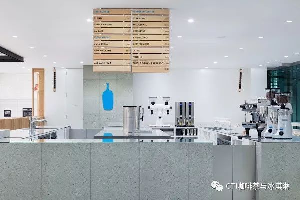 Blue Bottle 的店面空间简约而现代,主要源于 Freeman 自身对于日式美学的热爱。而大多数分店皆座落于商业人士聚集的区域,像是旧金山渡轮大厦以及纽约曼哈顿中城的洛克斐勒中心。