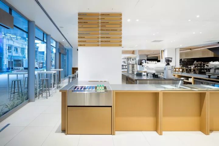 在空间设计中,Schemata 团队引入了让所有人之间平等联系的设计概念,不管是来店的客人,还是在店里工作的员工,都交叉混合在一个大空间内。这种最大程度的开放性与可视化,也是希望促进员工与顾客从进店到喝上咖啡的全过程中都能够随时互动、交流。