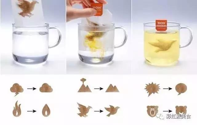 BOH甘菊茶的茶包非常有设计感。BOH为了体现甘菊茶减压和疗愈心情的效果,在茶包上用可食用的油墨画上了一些代表暴躁的图案。当茶包接触到热水时,油墨就会慢慢溶解,图案也会变得祥和,老鹰会变成鸽子,火种会变成水滴等等。跟女朋友吵架了的话可以送一包试试哦~