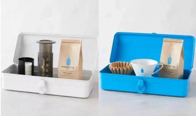 当中还包括了与日本职人工具箱品牌Trusco合作推出的联名款工作箱,蓝色和白色两款箱子上还印有Blue Bottle Coffee的字样,令人一眼看到就非常想入手!