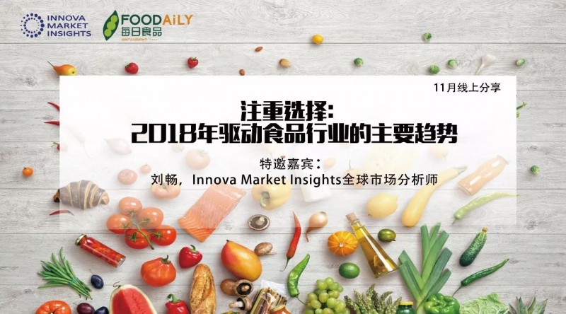 11月22日(北京时间,晚19:30),Foodaily特别邀请了Innova全球市场分析师刘畅,通过Foodaily千聊直播间为大家深度解读2018年10大趋势,结合中国市场案例,她将与大家一起探讨未来最具影响力的市场发展走向…(中文分享,通过文末方式或点击“阅读原文”,报名参与)。