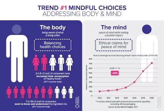“注重选择”引领整个Innova Market Insights的2018年十大趋势。Innova基于其在全球范围内对食品饮料发布动态和消费者研究,指出未来即将影响行业发展的趋势。