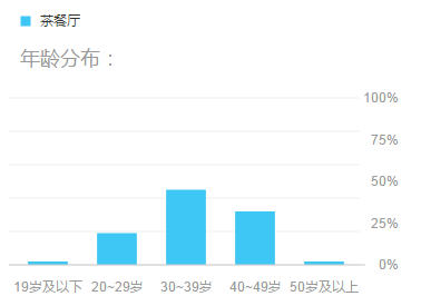 当然,“老化”这个锅也并非全由品牌背,事实是,茶餐厅这个品类在某种程度上进入了“老化”,从百度指数上搜索可见,30—49岁的茶餐厅客群占到77%,而20—29岁客群只占到19%,不被年轻的90、00后消费群体认可、喜爱,茶餐厅的前途不见得多光明。