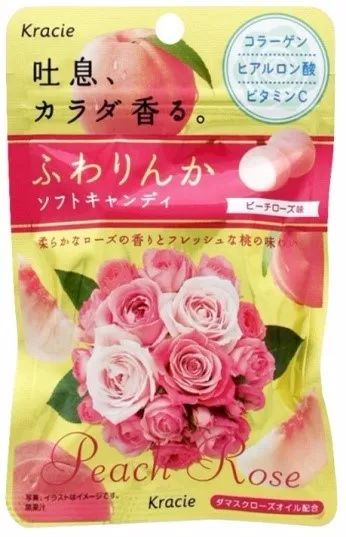 5.可以美容的软糖:又是软糖,软糖这两年的市场热度不断升高,多数软糖产品主打的人群就是女性和儿童。日本KracieFuwarinka公司推出的该款软糖产品是桃子玫瑰味,含有胶原蛋白、透明质酸和维生素C,声称有助于实现美容的效果。