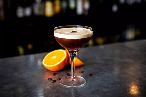 这款混合了伏特加、浓缩咖啡、烈性甜酒和香草的咖啡鸡尾酒最早出自英国调酒师Dick Bradsell。1980年代,还在伦敦著名酒吧Fred’s Club做吧台调酒师的Bradsell遇上了一位模特。她正好需要一款“能叫醒我,然后搞砸我”的酒。Espresso Martini最具标志性的装饰是飘在泡沫上3颗咖啡豆,一如飘在Old Tom gin martini上的3颗橄榄。