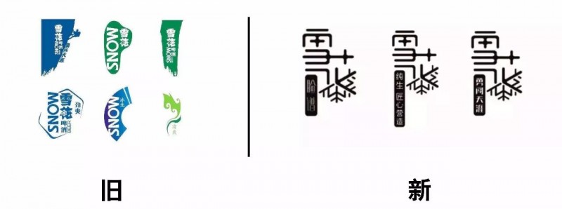 logo方面的变化特别明显:去掉了以往的“snow”跟雪花图案采用了印章形式的字体,结合雪花图案,图文合一,更加简约、明快。
