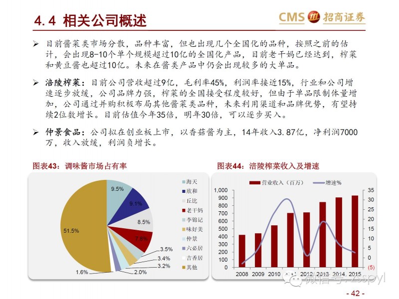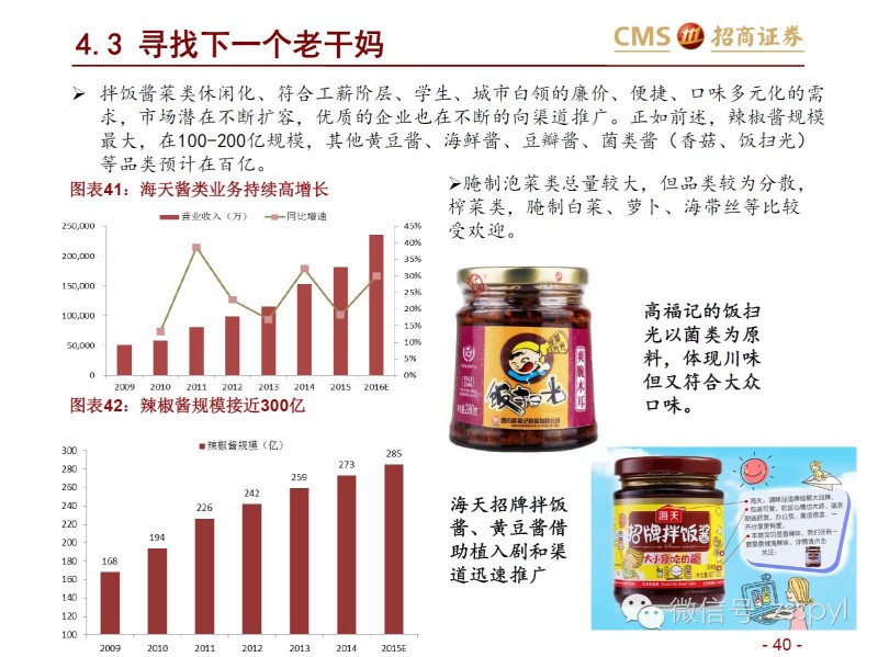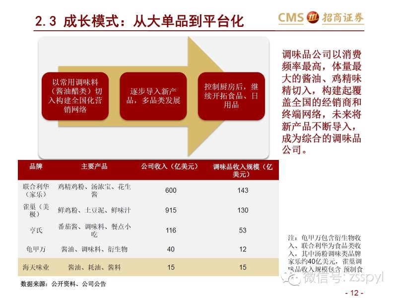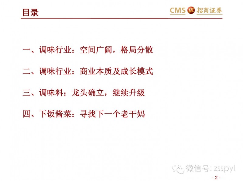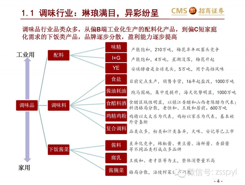 中国调味品协会常务副会长兼理事会总干事卫祥云曾指出,调味品企业在市场变化的情况下要有所作为:一是提高企业应变能力,通过供给侧结构性改革调结构、促转型和谋发展;二是适应高端餐饮业为主的产品供应结构面向大众餐饮业进行调整;三是针对特定行业和特殊产品开发相关调味品和食品配料等。事实上,目前整个调味品行业呈现出空间广阔但又格局分散的特点,要做好市场首先要了解整个调味品行业的格局,招商证券的这篇行业解析值得一读。