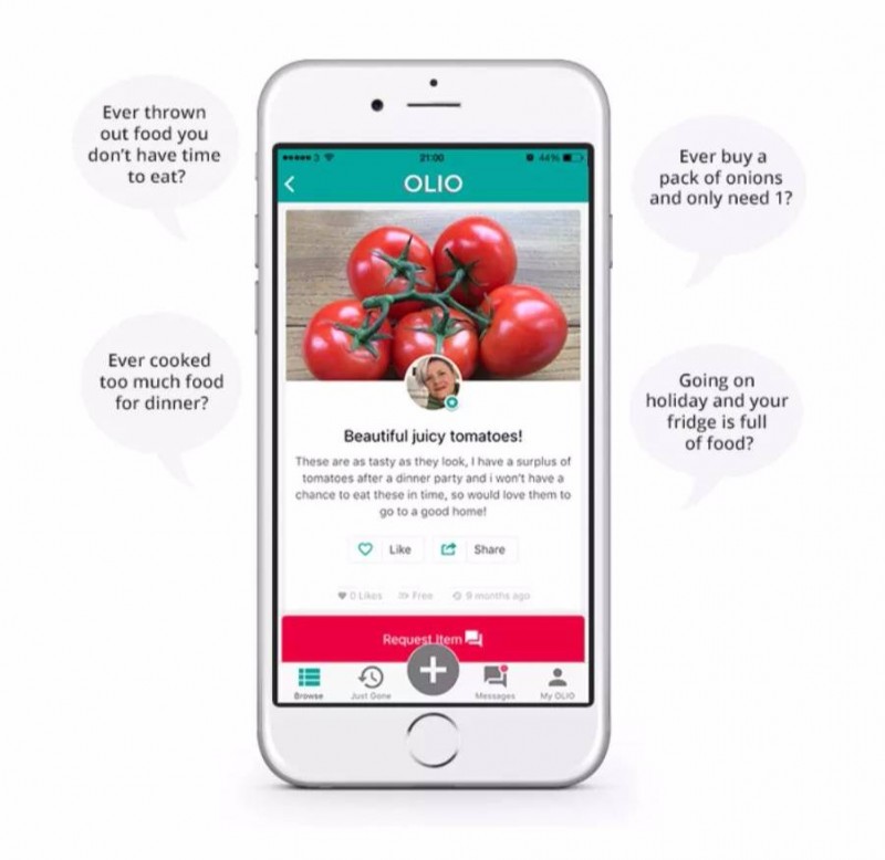 发达国家超过一半的食物浪费发生在家里面,发生在上述提到的这些场景中。为了解决这个问题,英国的两位企业家创建了一款名为OLIO的手机应用程序,它能让人们将多余的食物分享出去,从此告别不健康的剩菜剩饭。