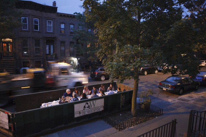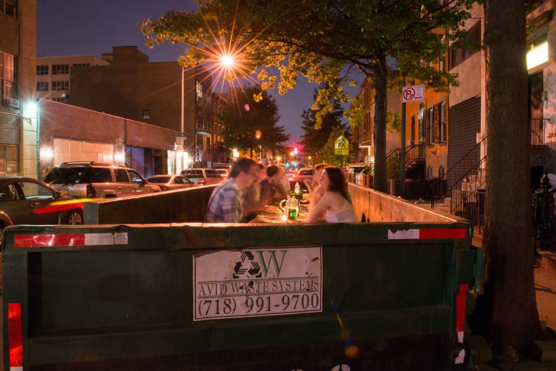 人们坐在Salvage Supperclub垃圾桶里吃饭