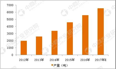 2012-2017年中国橄榄油产量增长趋势图