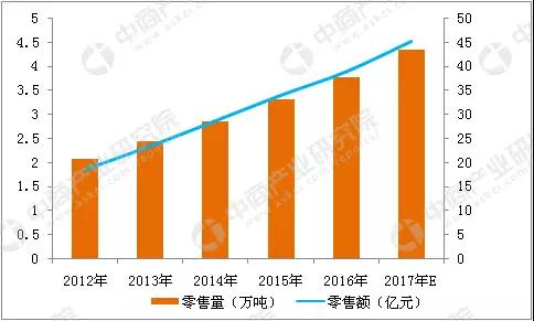 2012-2017年中国橄榄油市场零售情况统计