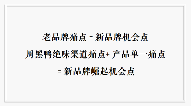 兑现套路:在一线城市,打造非卤鸭类休闲卤味品牌,与周黑鸭绝味产品强烈“对立”,品牌运营强烈“一致”。周黑鸭、绝味必须闹心,它是收购还是跟进?欲罢不能。