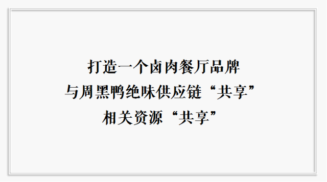 兑现套路:在一线城市,匠心打造卤肉餐厅品牌,与周黑鸭、绝味供应链资源“部分共享”,相关资源“共享”。周黑鸭绝味核心团队是人,只要是人就有一个“围城心理”——做餐饮的想做食品,做食品久了想碰餐饮。