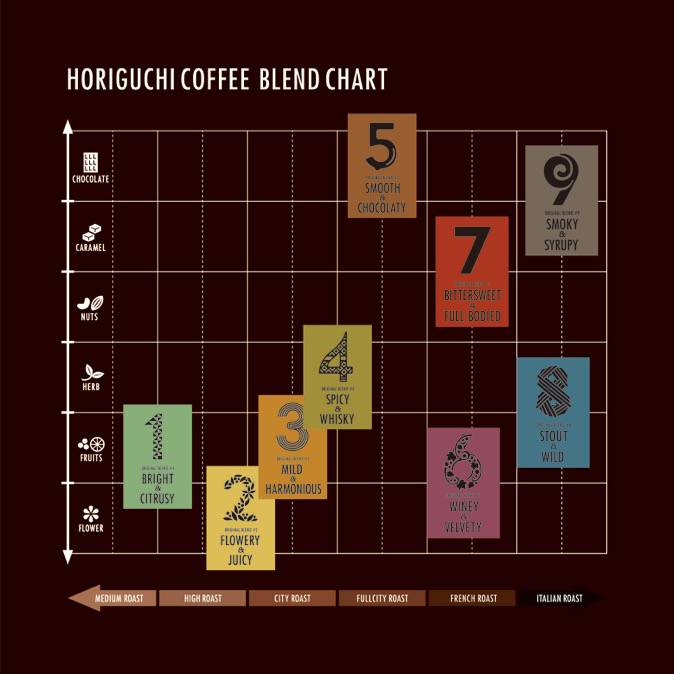 在精品咖啡文化中,许多人认为单一产区才是最好的,但堀口珈琲却恰恰相反。他们认为,9款特别拼配的咖啡豆才是他们的特色。