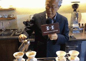 作为一家主打手冲的咖啡店,在开业典礼上堀口俊英先生本人为在场的爱好者现场展示了他独特的手冲方法。