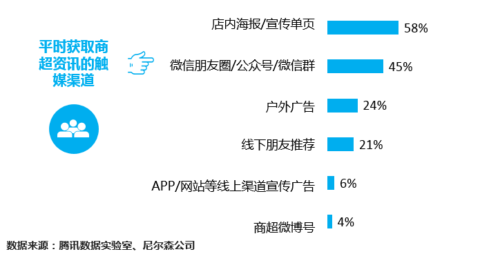 传统海报仍是零售商当前的主要营销方式和消费者获取信息的首要渠道,微信朋友圈、公众号已成为消费者的第二信息来源,渗透率直逼传统海报,能分享、可互动是其受推崇的主要原因。