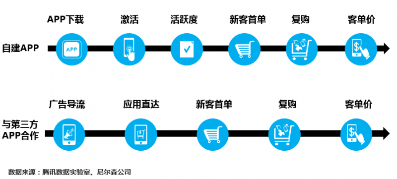 自建APP以及与第三方APP平台合作为O2O线上平台各个阶段营销赋能,带动线上销量。