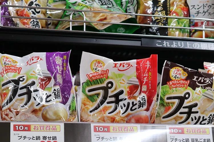 除了味之素这种一小块一人份包装的浓缩高汤块以外,Ebara胶囊式的火锅浓缩汤头也非常受欢迎。一个人也可以享受热腾腾的火锅,如果人数增加,再多加几颗高汤浓缩液进来调节份量就好。