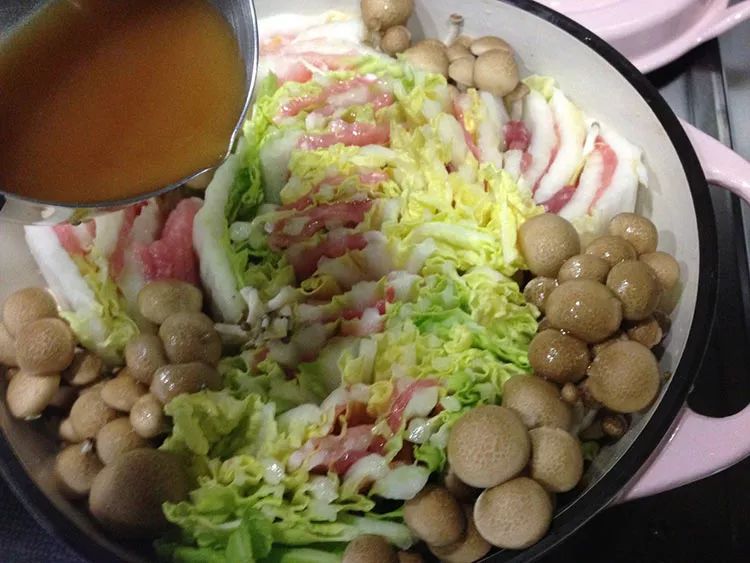 例如,在日本曾掀起一阵流行风潮的千层白菜猪肉锅,当猪肉和大白菜切好在锅中排列组合完后,淋上1〜2包的火锅汤头再加水进来闷煮更可以带出食材本身的美味。