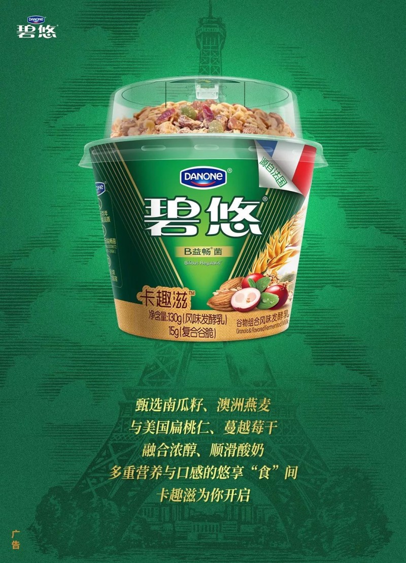 3.达能碧悠推出卡趣滋谷物盖法式酸奶,主打代餐