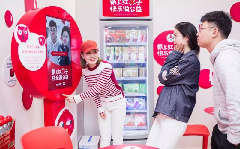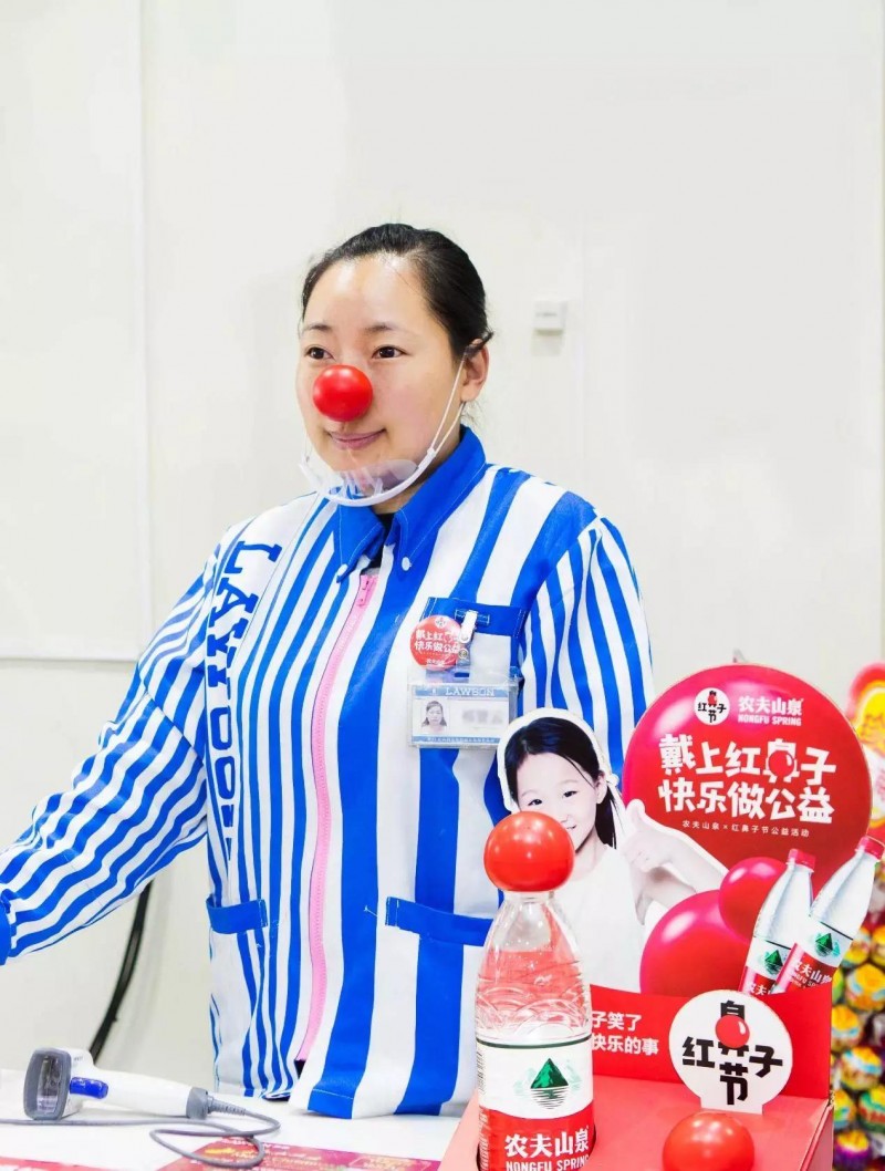 如何破题?农夫山泉与红鼻子节采取了共创IP的做法,以遍及中国城市的农夫山泉卖场和红盖子产品作为载体,以2B-2C的方式替代纯2C的募捐,让红鼻子节在中国迅速落地——消费者只需购买农夫山泉,带上红鼻子,就能快乐做慈善。