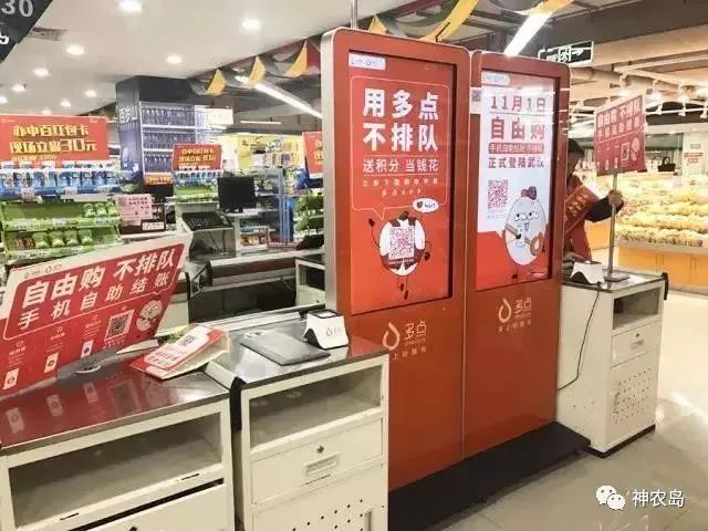 多点Dmall先后推出了秒付和自由购,500元以下可以实现免密支付,用户结账时只需摇一摇,出示二扫码就可以完成付款并获得积分。它还增设了“信用体系”,即在多点APP上享有高信用的顾客可以在商超中扫码购物、支付后,直接将商品带出超市。这样的创新颠覆了传统购物体验,实现任何方式、任何时候“自由购物”,还宣告着,商超改革的下一个时代——无人超市的到来。