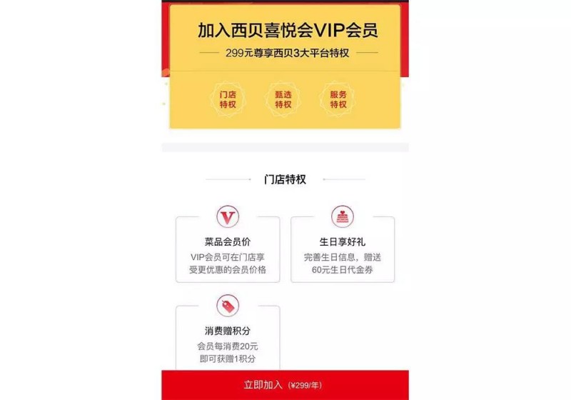 就在昨天,西贝甄选新版页面悄然上线,一条横板 banner 格外醒目——甄选 VIP 会员招募。会员特权包括三方面,门店(享会员价、生日享好礼等)、甄选商城(限时特价、专享商品等)和服务(亲子莜面体验、私房菜等)。