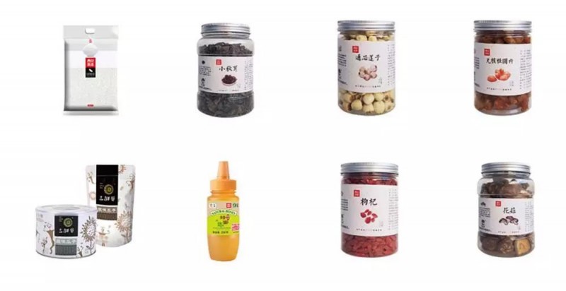 目前在售产品有 10 多种,包括大米、瓜子、木耳、莲子、蜂蜜、儿童餐具......价格从 12.5 元到 139 元不等。