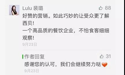 一个网友在西贝的文章下留言说,好赞的营销,如此巧妙的让受众更了解西贝。