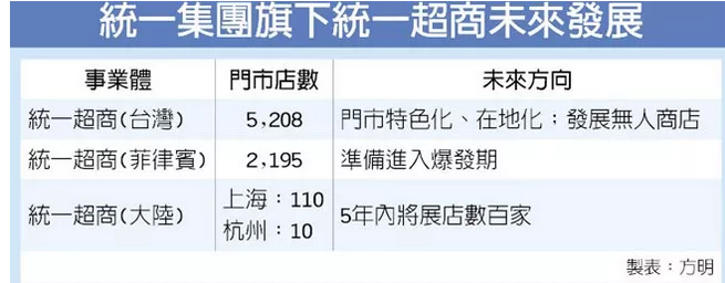 据台湾中时电子报报道,统一企业集团董事长罗智先在统一企业50周年庆祝活动时表示,统一超全台超过5千家门店,除发展特色化之外,应零售业变化将运用科技发展无人商店,最快在明年上半年就会推出,首家地点将选在台北市。