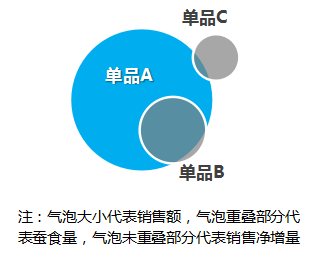 蚕食作用:增加单品的同时会消减现有组合内部其他单品销量的现象