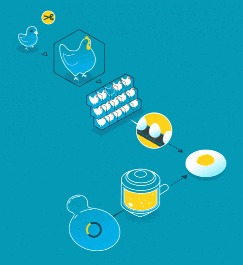▲ 传统的养殖业产蛋模式和Clara Foods利用酵母繁殖产蛋模式对比
