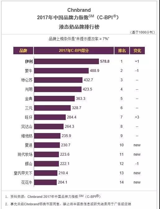 2017年开年,伊利就迎来了大大的“开门红”——国际品牌价值评估机构争相为伊利“点赞”。在国际品牌价值评估权威机构Brand Finance公布的“2017年度Brand Finance®全球乳制品品牌价值排行榜”中,伊利品牌强度指数位居全球第一,创造了亚洲乳企迄今为止的最好成绩。这还不算完,就在此后不久,在全球知名传播服务集团WPP发布的2017年度BrandZ™中国最具价值品牌100强榜单中,伊利再度强势登顶,蝉联食品类品牌价值第一,一举成为名副其实的全球乳业品牌“双冠王”。