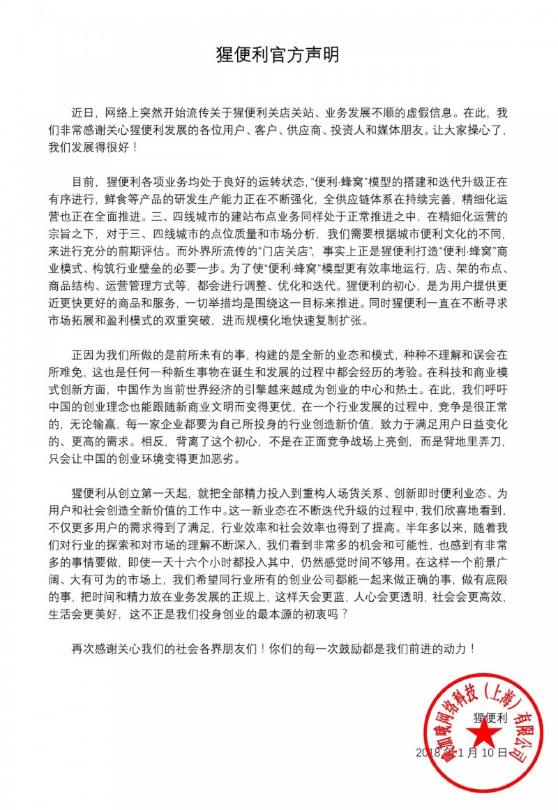 以下是猩便利关于撤站传闻的声明