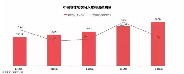 目前我国餐饮大盘规模稳定增长,增速维持在两位数水平。根据报告中国餐饮大盘收入稳定在增长,2016年突破3.5万亿大关,同比增长11%,2017年中国餐饮收入有望达到3.9万亿,未来预计保持10%+增速。也就是说,2018年餐饮行业仍能保持10%以上增长。