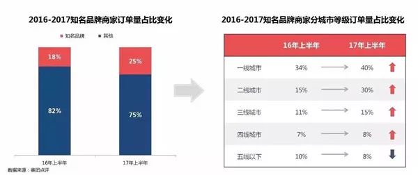 随着众多知名餐饮品牌与外卖平台合作,品牌的话语权进一步加强,订单比例从16年上半年的18%上涨到25%,一年内增长7个点。品牌商家的不断入驻,带给小餐企的经营压力也将会更大。