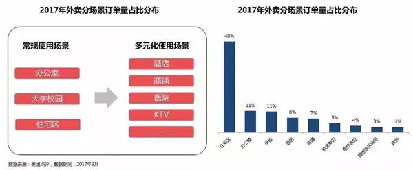 随着用户外卖习惯的养成,异地差旅人士成为外卖不容忽视的重要人群。除此之外KTV、医院等消费场景也逐渐丰富。未来商家可积极探索用户消费场景,促进外卖消费场景多元化,扩充用户量,提升订单量。