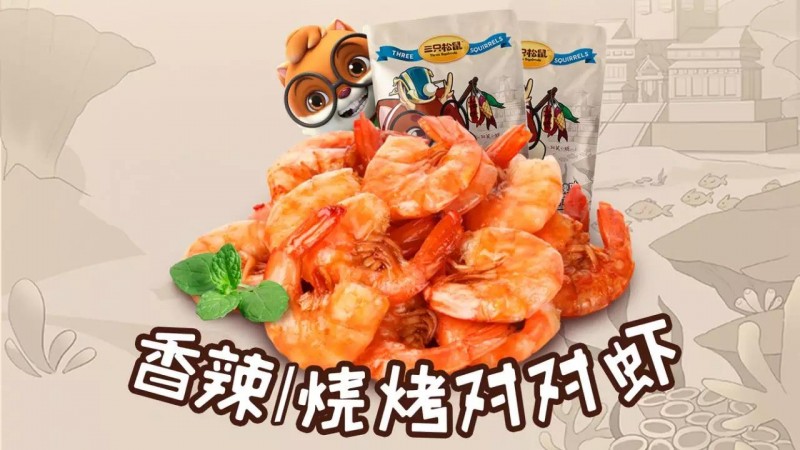 松鼠对对虾选择的是南美白对虾,经历十五道工艺,涉及2次加热2次冷冻2次调味2次消毒杀菌,让消费者感受到美味和放心。