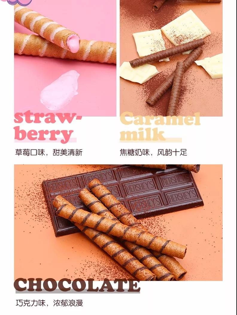 真心棒油脂型夹心饼干有草莓、巧克力、焦糖奶三种口味,纤细的身材更有独特的夹心,每一口都味道浓郁。