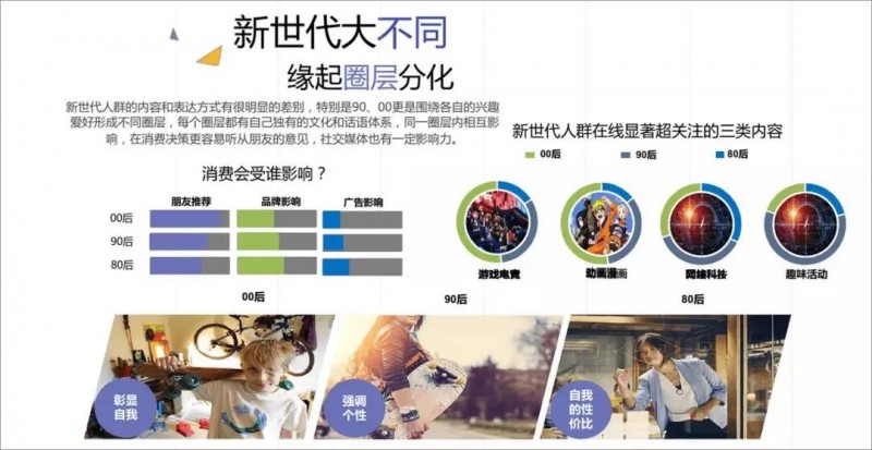 群邑发布的《新世代人群洞察报告 2017》告诉我们,90 后、00 后围绕各自兴趣爱好形成不同圈层,他们的消费决策更容易受到圈内朋友的影响。年轻人更在意社群认同,而不是大众认可。