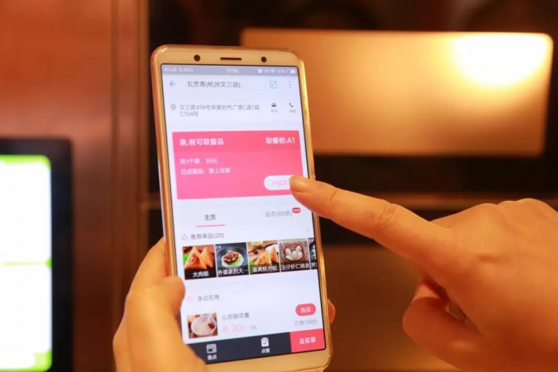 而在外卖和零售方面,五芳斋除了保留常规的外卖通道之外,还要联合口碑推出预付到取,提升效率;他们同时还在门店中设置了 24 小时营业的无人货柜,结合线上的基于地理位置的营销推送,来将线上流量引流到线下。