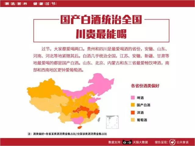东北地区爱喝啤酒符合大家的一惯印象,但江西、湖北等省偏好洋酒令人匪夷所思,很可能是统计偏差。实际上,华南地区偏好洋酒更合理一点。
