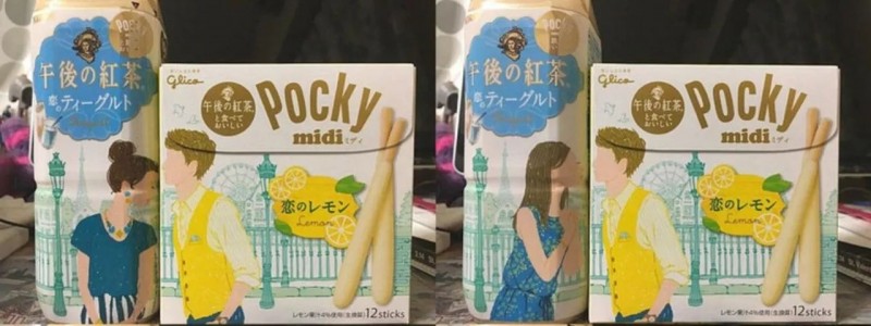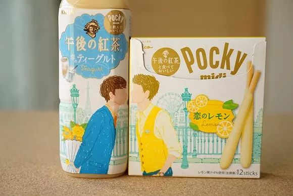 最让人印象深刻的其实是2016年他们的情人节联名款。百奇发布了比常规百奇棒状饼干更矮胖的“Pocky midi 恋爱柠檬”味,午后红茶则发布了炼乳红茶味,当二者结合在一起食用,就神奇地变成了芝士蛋糕的味道。