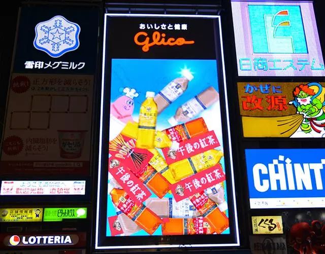 当年格力高还首次把大阪道顿堀的地标性广告牌让了出来:原本这块广告牌是格力高经典的高举双臂的跑步小人,去年情人节期间换成了午后红茶和百奇的甜蜜搭配。这是格力高自1935年在道顿堀设立第一代广告牌以来,第一次上面出现非格力高商品。