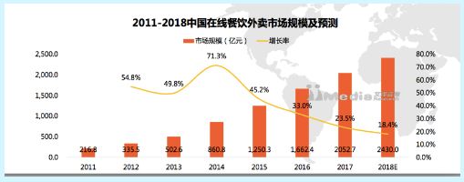 据艾媒咨询近日发布的《2017—2018年中国在线餐饮外卖市场研究报告》显示,截至2017第四季度,2017年中国在线餐饮外卖用户较2016年增长19.1%,用户规模正式突破3亿人。这意味着每五个中国人中,至少就有一人点外卖。