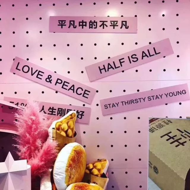 简洁粉嫩的门头、粉色的墙面、粉白主调的桌椅、粉色的抱枕、粉色的火烈鸟玩偶……HALF主题店从我们熟悉的“黑店”成功洗“粉”了。