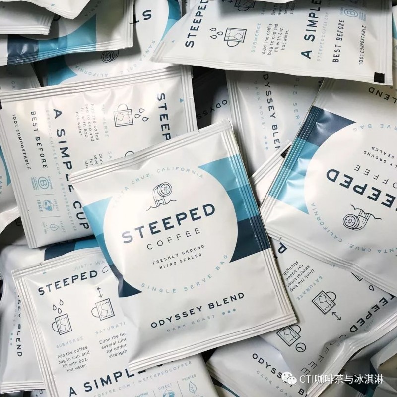 在加利福尼亚州圣克鲁斯的总部,Steeped Coffee开发了独立包装的单份咖啡袋,内含经过烘焙的高品质咖啡,为了长时间保鲜,包装采用小批次并冲入氮气。