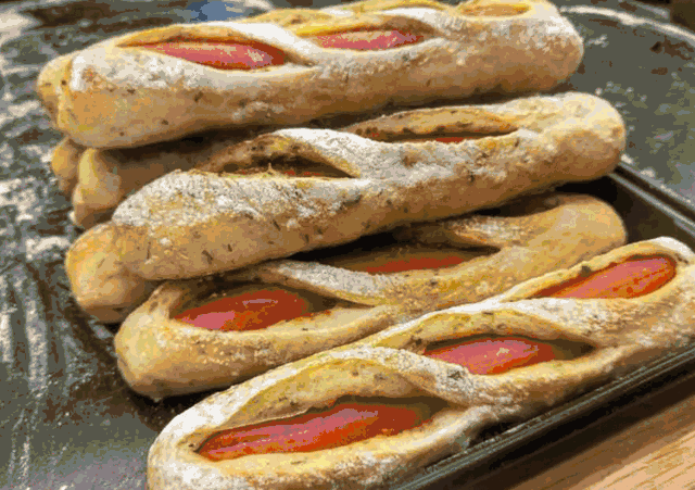 面团中加入了原叶红茶粉,并裹入红茶茶汤为基底的现打芝士和珍珠,并添加果干,做出口感微酸的软欧包。