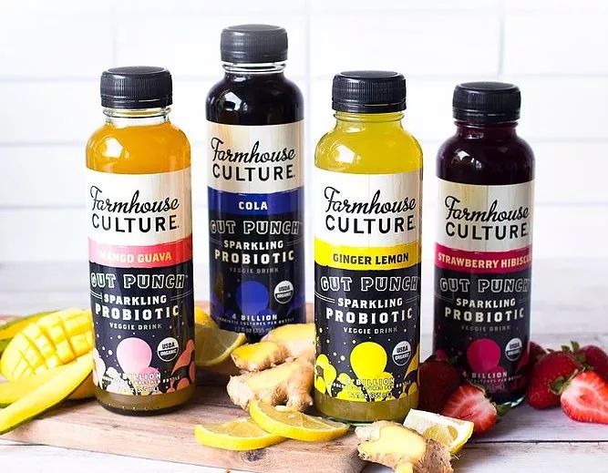 美国加州的Farmhouse Culture公司推出了一系列采用有机泡菜、甜菜和酸菜制成的零食脆片。他们还于2018年春天推出了一款益生菌气泡饮料,以Farmhouse特有的植物发酵液(水、卷心菜、盐和香菜等)为基料,使用赤藓糖醇和甜菊糖提取物作为甜味剂。该公司在2017年获得了通用磨坊旗下风险投资公司301公司的投资。