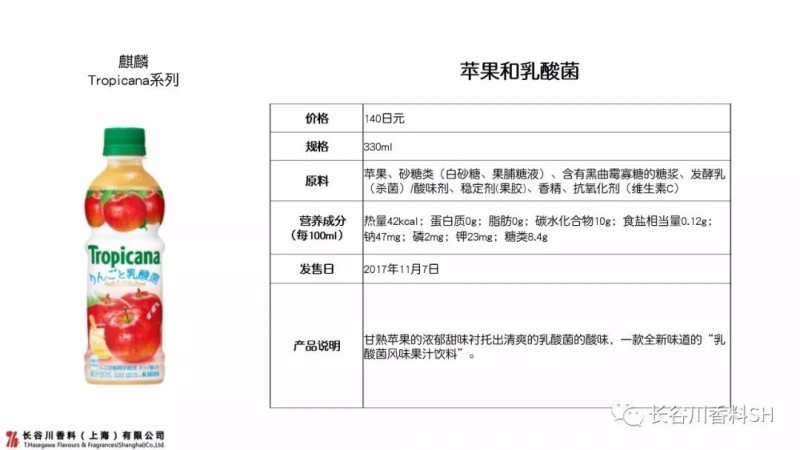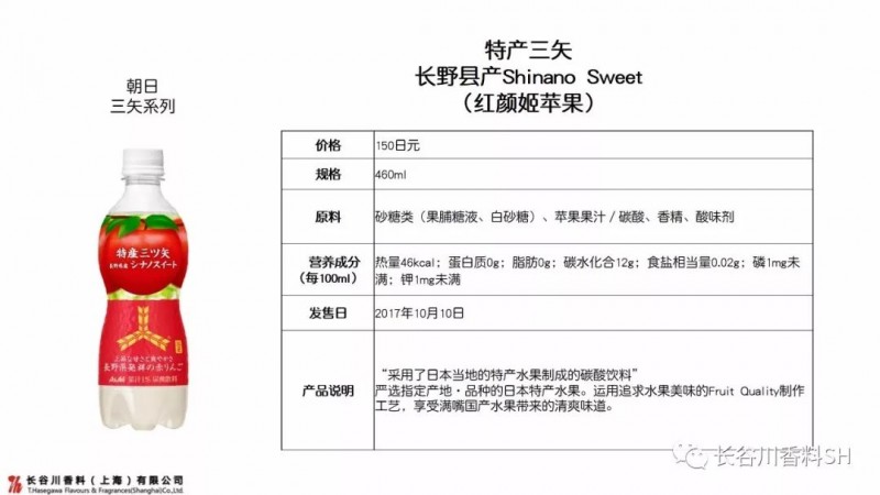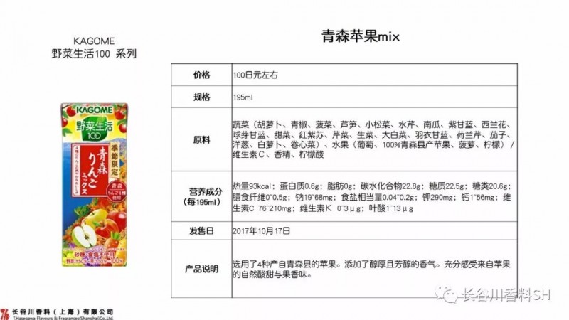 据调查,苹果是日本冬季饮料市场最受欢迎的果味之一,所以一到了秋冬季,各生产商纷纷推出苹果味的新产品。